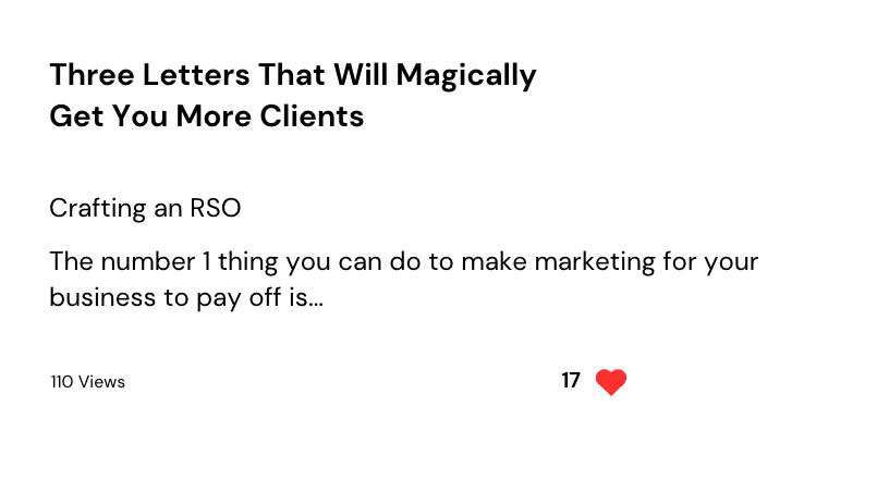 Crafting an RSOThe number 1 thing you can do to make marketing for your business to pay off is: craft an RSO.A Rock Solid Offer.Here’s how: