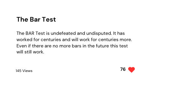 The BAR Test is undefeated and undisputed. It has worked for centuries and will work for centuries more. Even if there are no more bars in the future this test will still work. As long as humans walk the Earth you’ll be able to use this to drastically improve copy.Here’s how you use it:You look at a piece of text (we call this ‘copy’ in the biz) and you ask yourself: