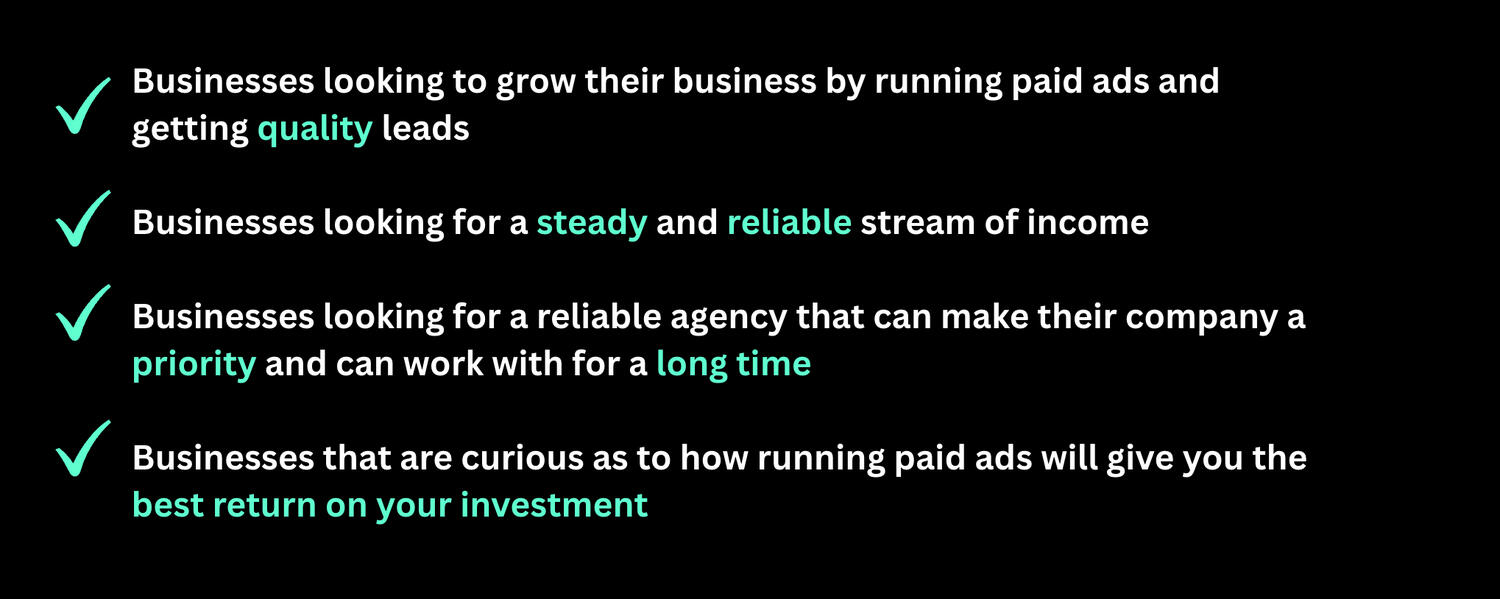 By the end of this Audit call, you will have a clear understanding of the next steps you can take for your business to start generating consistent and reliable results online with Paid Advertising.